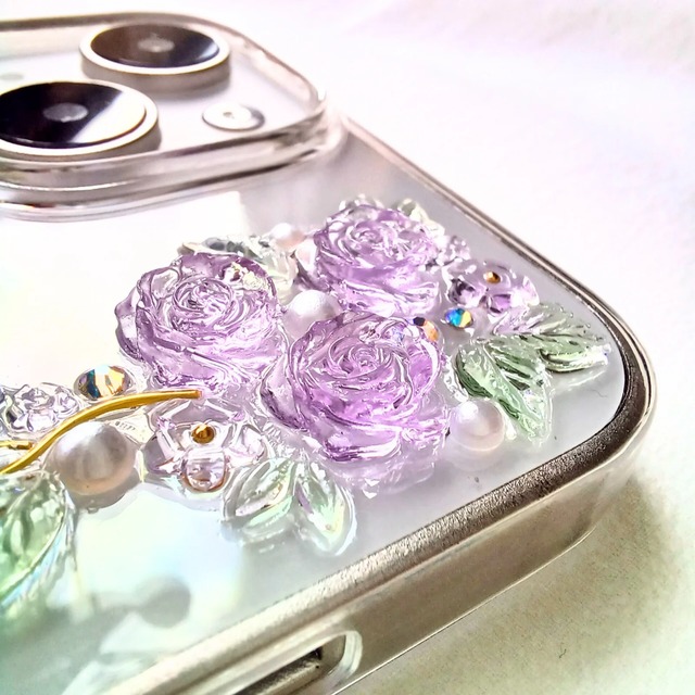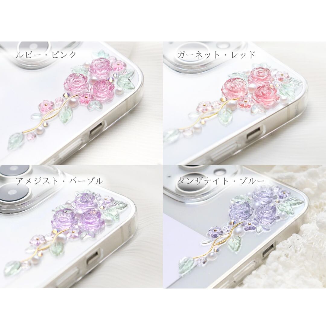 グリップ付き Healing Rose 〈 アメジスト・パープル 〉 心癒される美しいミニローズのスマホケース【iPhone/Android全機種対応】