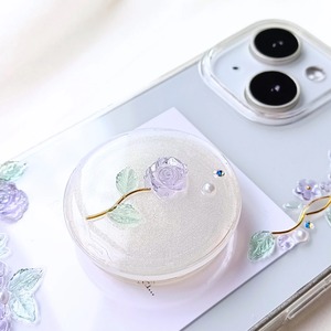 グリップ付き Healing Rose 〈 タンザナイト・ブルー 〉 心癒される美しいミニローズのスマホケース【iPhone/Android全機種対応】