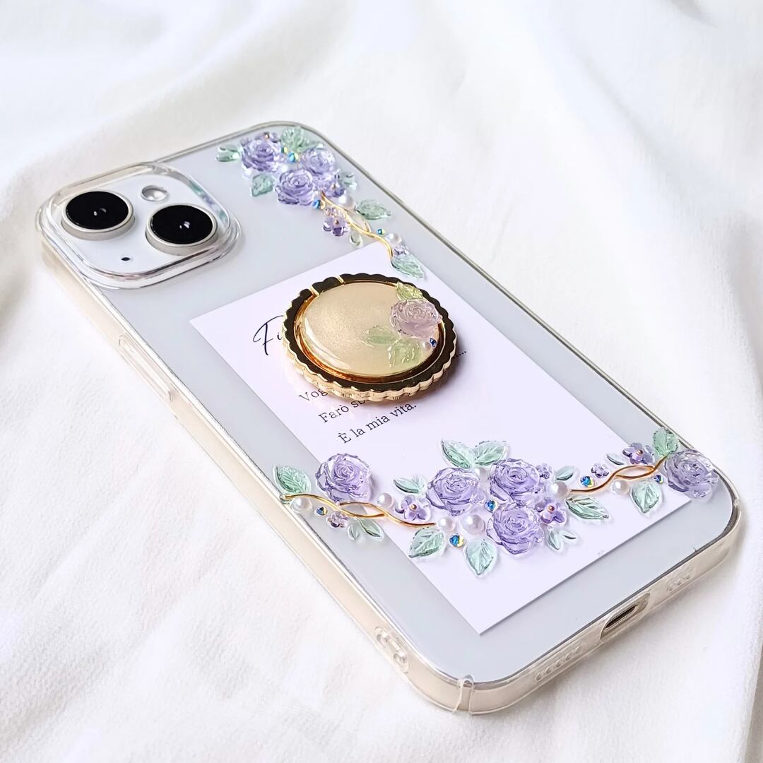 リング付きHealing Rose 〈 タンザナイト・ブルー 〉 心癒される美しいミニローズのスマホケース【iPhone/Android全機種対応】