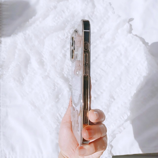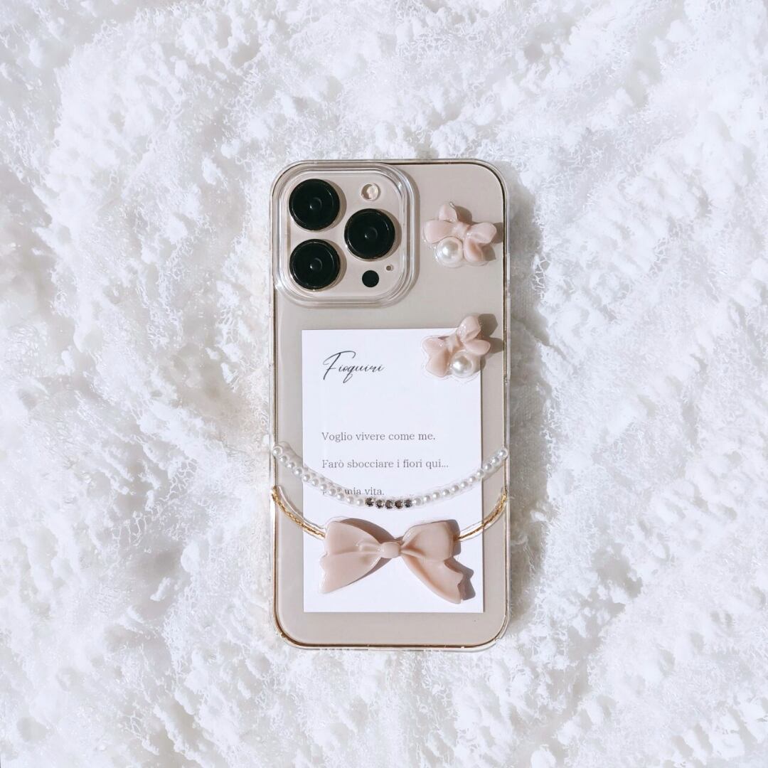 milk tea ribbon 秋冬…これからの季節に ちょっぴり甘めのリボンとパールのスマホケース【iPhone/Android全機種対応】】
