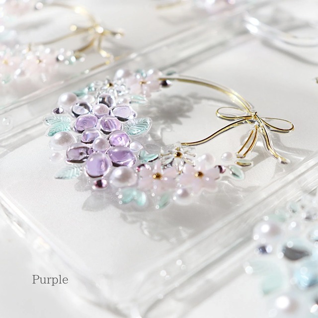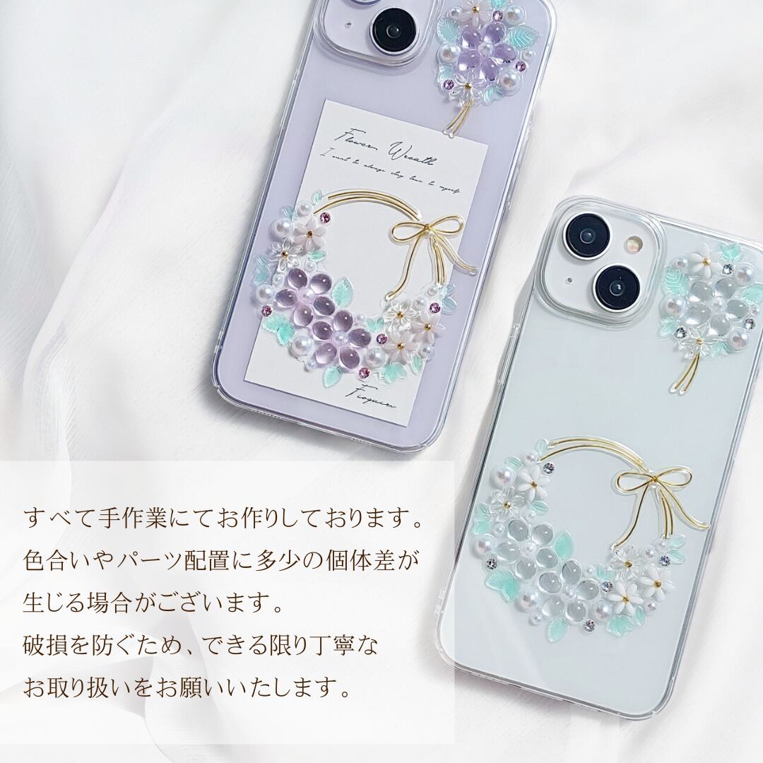 Flower wreath 選べる7色 コロンとしたお花が可愛いリースブーケみたいなスマホケース【iPhone/Android全機種対応】